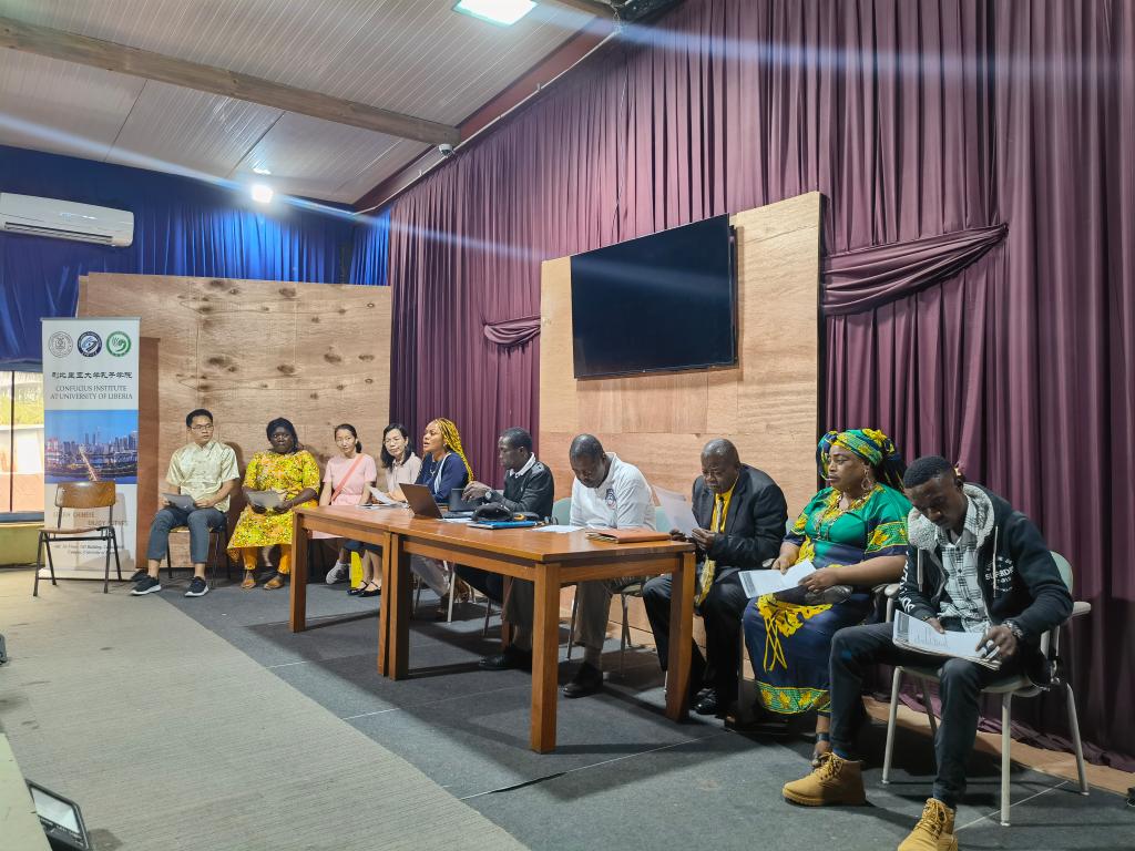 随后,中方院长周红专向在场师生简要介绍了利比里亚大学孔子学院的建立、发展及办学特色等,特别强调指出学好中文带给大家赴中国留学和中资企业就业机会等美好前景。