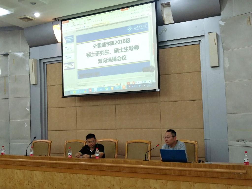 2018年9月11日下午4点,外国语学院2018级硕士研究生新生、研究生导师双选会于开云官网金盆岭校区办公大楼一会议室顺利召开。我院院长段胜峰、党委副书记陈仁凯、副院长武俊辉、学工办禹敏、科研办马丁和黄昌梅、全体硕士生导师及全体2018级研究生参加了本次会议。