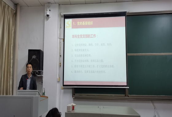 10月7日晚七点半在金盆岭校区13教600教室,学院党委副书记陈仁凯给全体本科生党员和2019级新生讲党课。