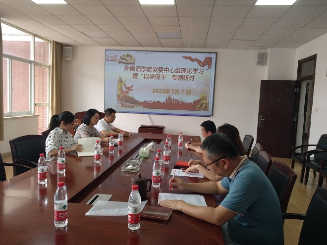 7月7日上午,学院党委在文科楼A603会议室召开中心组理论学习暨“以学促干”专题研讨。会议由院党委书记文丽丽主持,院党委全体委员及学院班子成员参加。