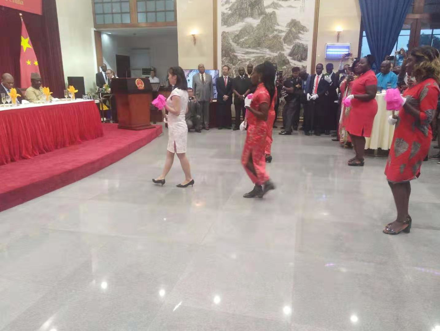 招待会上,利比里亚大学孔子学院师生表演了精彩的中利舞蹈。