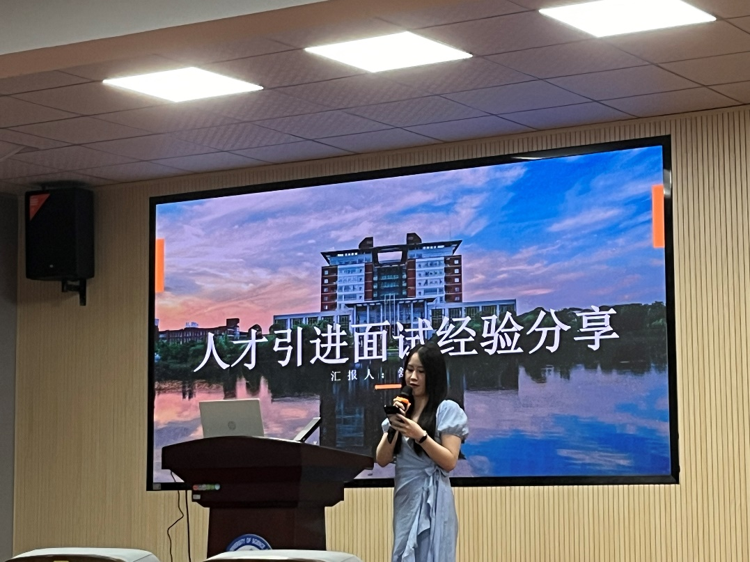 7位毕业生也带来了满满的干货分享与交流。其中,英语笔译专业的舒小芳通过自身实例分享了人才引进面试的经验,分享自己得到人才引进资格过程中自己的学习方法和资源整合。她表示,面试时不管遇到什么困难都要放平心态,不能退缩。
