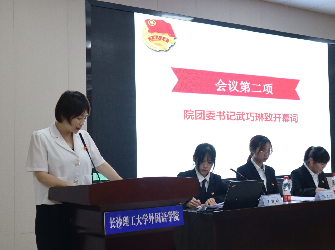 本次会议共十一项议程。大会第一项,奏唱《中华人民共和国歌》,全体起立,会议在庄严的国歌声中拉开帷幕。大会第二项,院团委书记武巧琳致开幕词,她就上一年度团学组织情况做了总结。她提到,正是上一年度全体团学干部的辛勤付出,才使得我院文化摆渡之夜、毕业晚会等多项大型团学活动得以成功举办,每一位同学的情怀与精神值得点赞,也希望全体团学干部予以坚持。大会第三项,院团委会办公室主任王筱婧作《筹备工作汇报》,她向与会人员汇报了本次大会的所有准备工作内容。大会第四项,院学生会学习部部长黄丽媛作《代表与候选人资格审查报告》,让全体代表对赛前准备情况明晰。大会第五项,院团委会生活权益部部长翟鑫鑫宣读《大会选举办法》。大会第六项,院学生会文体部部长陈未雨公布《监票人、计票人名单》。大会第七项,院学生会主席李超作《全年工作报告》,她总结了2021—2022年度院团委学生会的工作情况,肯定了我院团学在引导同学们关注多元成长、参与课外实践、厚植家国情怀等方面发挥的积极作用,但同时她也希望在以后的工作中团委学生会能够更加系统化,分工明确化,配合更加紧密。大会第八项,候选人竞职演讲,27位候选人就自己意向的部门和职位发表竞职演讲,经过全体代表公正选举,最终收取有效投票89份,无效投票2份。大会第九项,院团委书记武巧琳为第四届团委第十七届学生会主要干部颁发聘书,并予以鼓励。大会第十项,总监票人吴紫怡公布投票结果。大会第十一项,全体起立,奏唱《中国共产主义青年团团歌》。