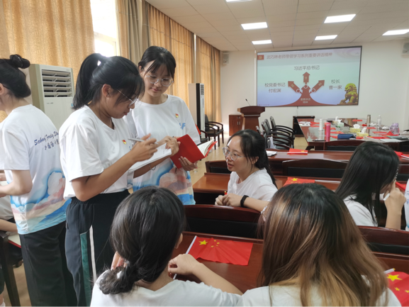 接着,武巧琳老师带领大家学习《习近平谈治国理政》第四卷。她表示,全体学生党员要从提高政治站位、感悟真理力量、推进工作实践的角度加强学习,深刻领悟“中国之路”、“中国之治”、“中国之理”。武巧琳老师强调,外语学子在厚植爱国主义情怀的同时,也应该树立国际视野,加强国际传播能力建设,打造湖湘文化国际化传播的前沿阵地,向世界展示真实、立体、全面的中国。