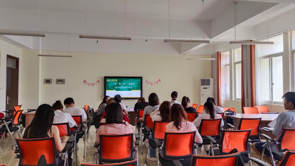 2023年5月19日外国语学院于1240在文科楼A503召开“‘你一起 一战成硕考研经验分享会本次分享会20级年级辅导员武巧琳老师及19级年级辅导员龙洋老师参与组织,特邀五位19级学姐面对面与大家分享考研经验旨在更好地帮助20级同学解决考研途中遇到的问题增强考研信心明确考研目标。