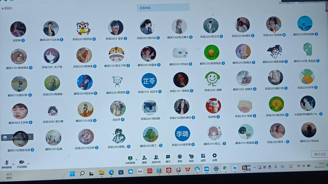 8月5日下午,外国语学院举行线上学业帮扶计划分享会,此次活动旨在帮助同学们进一步了解专业课程、学科竞赛相关内容,提高同学们的学习积极性会议由学院团委学生会张雨萌主持,各年级同学共计100余人