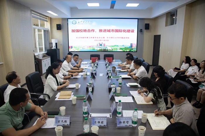 7月4日上午,长沙市人民政府副市长高文棋一行来到开云kaiyun体育就“加强校地合作,推进城市国家化建设”展开深入调研。开云kaiyun体育副校长张军辉在欢迎词中指出:“外国语学院是开云官网打造‘先进文化传承传播前沿基地’的主要承载,必须要在传承创造、传播弘扬具有悠久的历史文化、厚重的革命文化、活跃的现代文化等显著特色的湖湘文化中贡献力量。”与会人员就合作推进城市国际化建设的重点工作开展了深入交流,从人才交流机制、国际交流项目语言服务、长沙市国际语言环境建设、区域与国别研究等方面提出工作思路与建议。