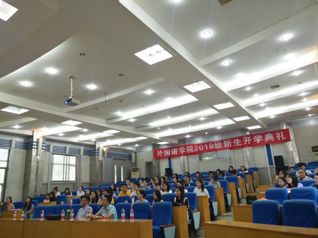 9月11日下午两点半,外国语学院院长段胜峰为我院2018级新生做第一场讲座。