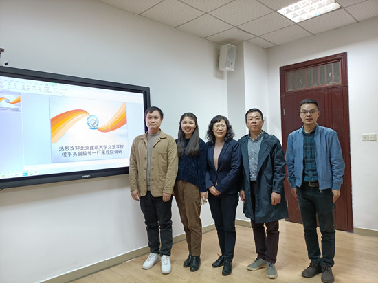 11月5日下午,北京建筑大学文法学院副院长侯平英一行四人来我院调研。外国语学院对本次同行的调研活动高度重视,教学副院长黄坚、外国语言文学系主任胡伟出席了调研活动。双方就我院省一流课程“通用工程英语听说”的建设、大学英语学分和课程设置、“十四五”规划等方面进行了深入的探讨和交流。