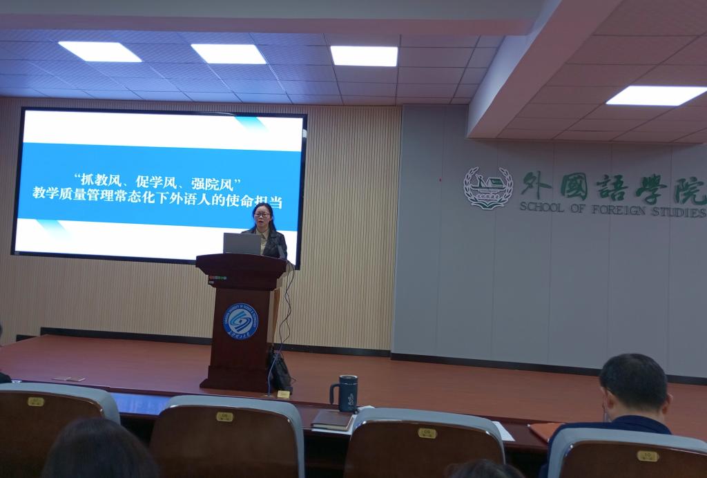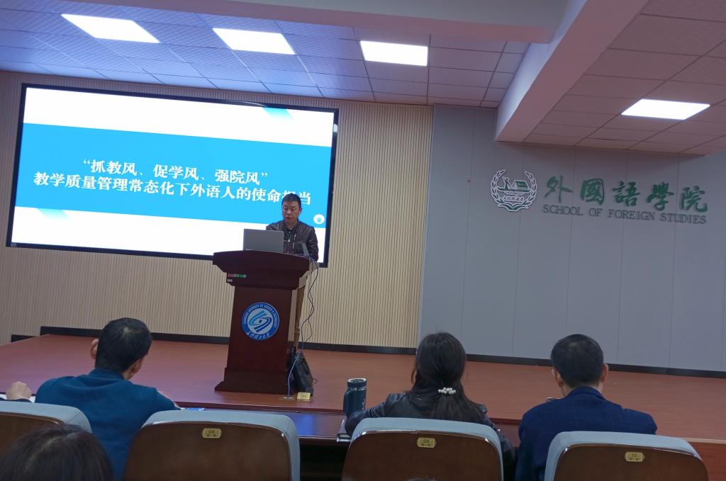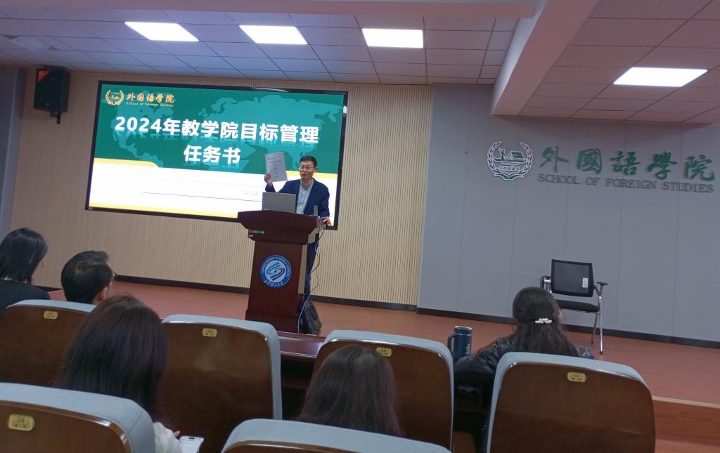 2024年4月9日下午,开云kaiyun体育外国语学院在金盆岭校区3号教学楼321报告厅召开了以“抓教风、促学风、强院风”为主题的专题大会。本次大会由外国语学院院长段胜峰主持,学院全体教职工出席。