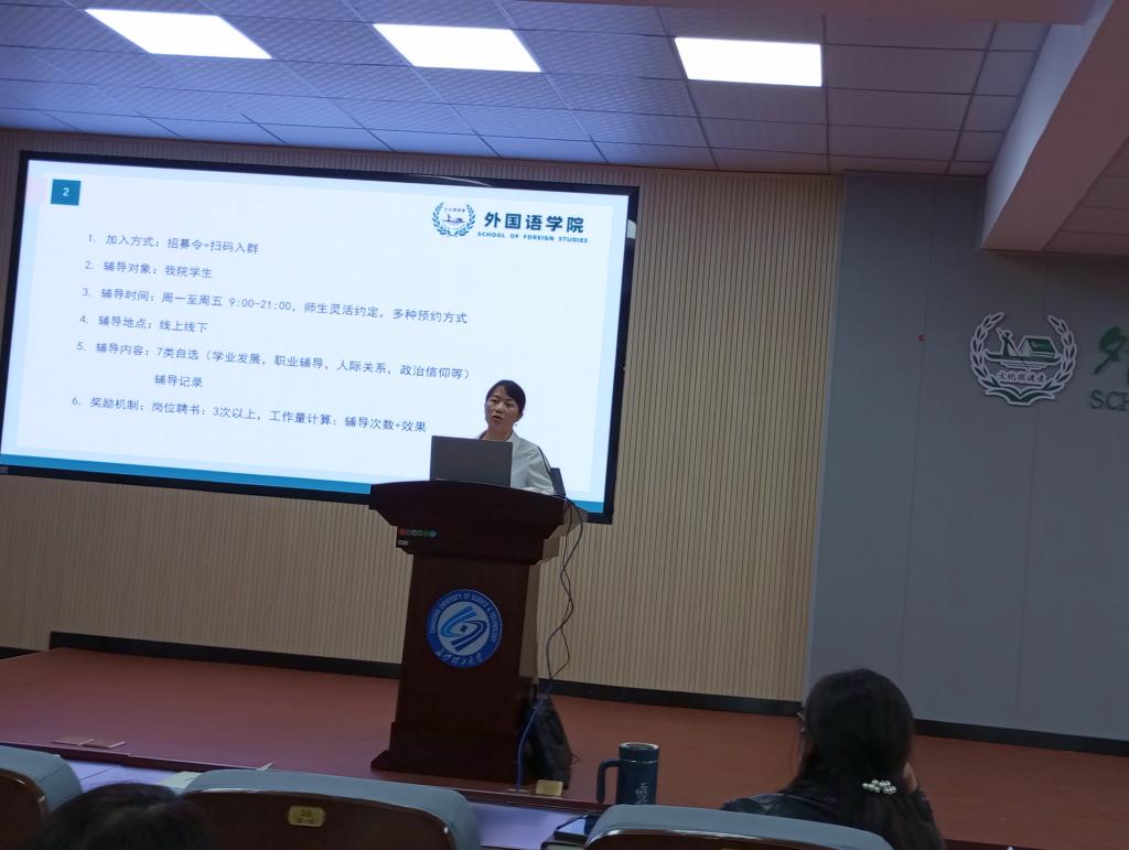 外院先锋队队长柳晓辉及副队长彭娅、孙文娟介绍了三个工作项目,包括“语你谈心”先锋队、“一对一”帮扶先锋队、“勤学励志”先锋队。他们表示,这些项目旨在深化教育教学改革,提升人才培养质量,促进党建与教书育人的深度融合,形成全方位的育人长效机制,帮助学生实现个人成长和职业目标。