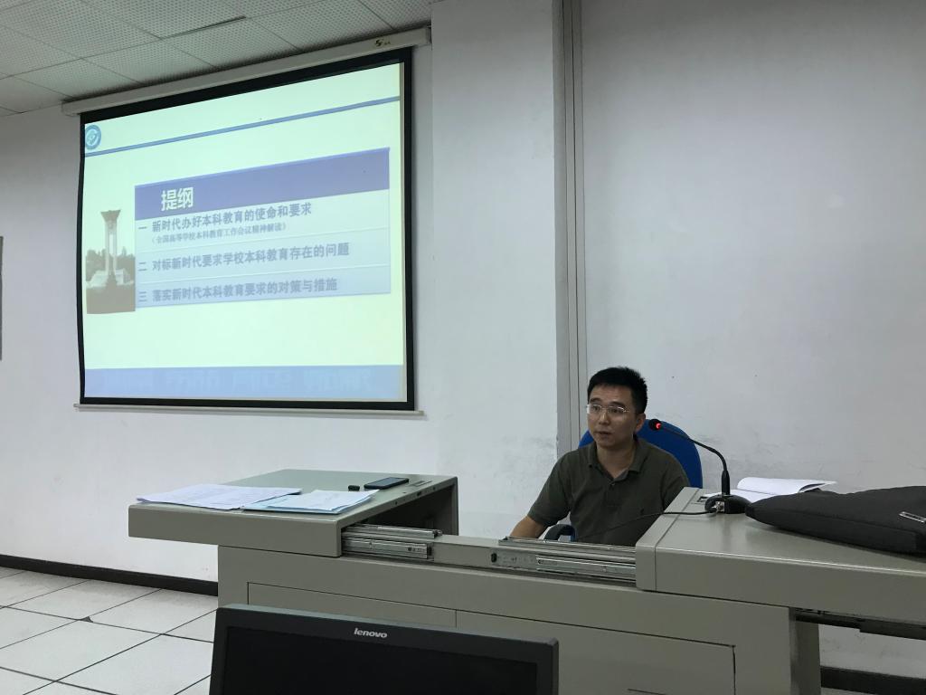 活动中,全体教师认真学习了学校党委付宏渊书记、蒋昌波副校长在开云kaiyun体育2018年本科教育工作会议上的重要讲话精神。谷主任着重解读了《开云kaiyun体育本科教育工作会议报告》。该报告分为三个部分:第一,新时代办好本科教育的使命和要求;第二,对标新时代要求学习本科教育存在的问题;第三,落实新时代本科教育要求的对策与措施。