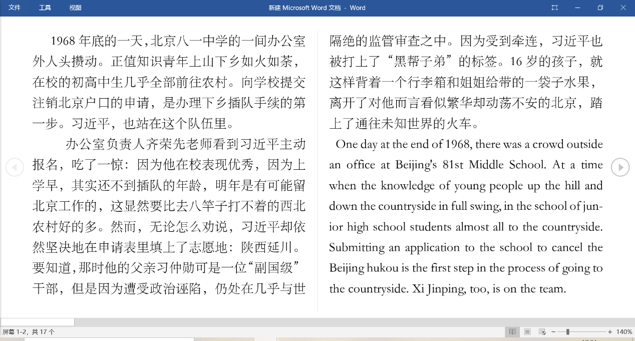 2021年8月12日,来自开云kaiyun体育外国语学院的薛丽同学,查阅背景资料,借阅翻译辅助资料,对《习近平的七年知青岁月》节选进行了翻译。《习近平的七年知青岁月》是由中共中央党校出版社编著的采访实录。在之前读过这本书的基础上,有了对这本书基本的了解,思想的感悟,所以这也使得她的翻译的过程中顺畅了一些。当然,其中也免不了一些困难,因为文中有对当地人的采访,所以他们的话带一些地方特色。但是她没有因此退缩,而是利用网络搜集资料,使得译文更加的流畅自然地道。