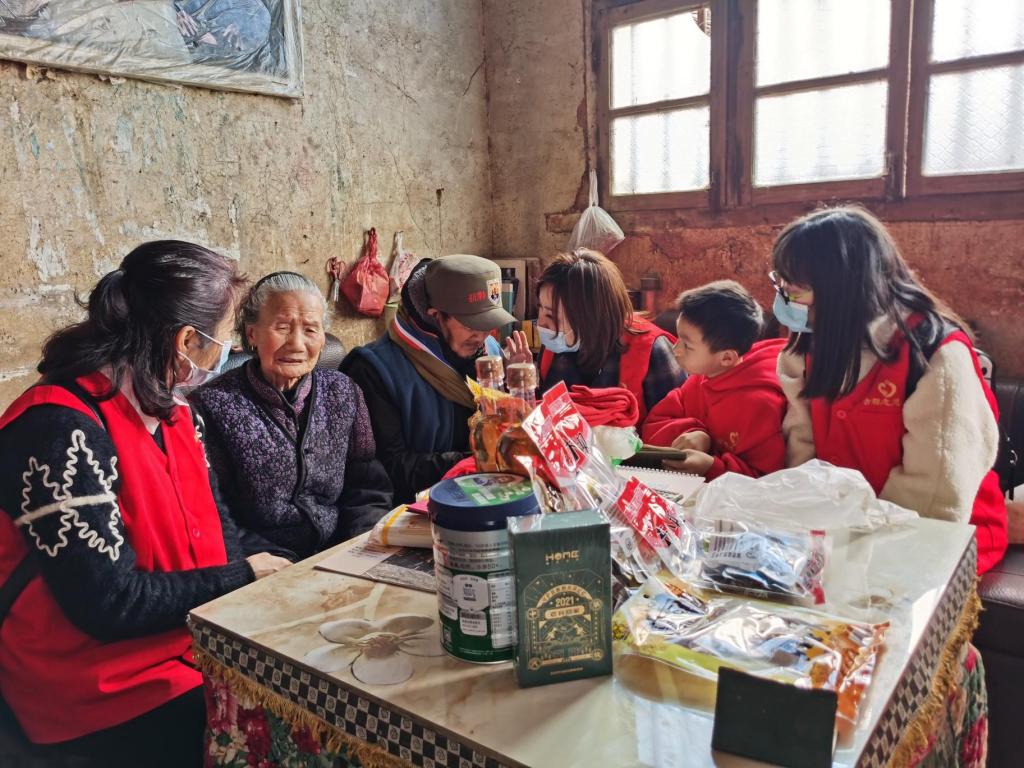 2021年2月5日,正值小年,桂阳县古郡志愿者协会会长谭宜达带领会员志愿者来到抗战老兵及老兵遗孀家中,为他们送去新春祝福,发放新春贺礼,陪伴他们共度佳节。为相应学院号召,提高社会实践能力,思想上进一步接受党的洗礼,坚定社会主义理想信念,作为志愿者协会的一员,外国语学院19级研究生吴熠敏随会长和其他志愿者踏上拜访老兵之旅。