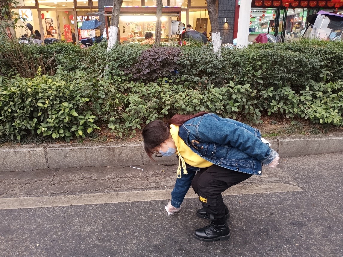 2021年1月31日,为响应学院号召,提高社会实践能力,改善城市环境,为市民服务,外国语学院英语1901班邹嘉怡来到衡阳市蒸湘区,开展“青春心向党 志愿我先行”活动。此次活动,她清理公共区域垃圾、擦拭公交车站座椅,完成清洁工作。