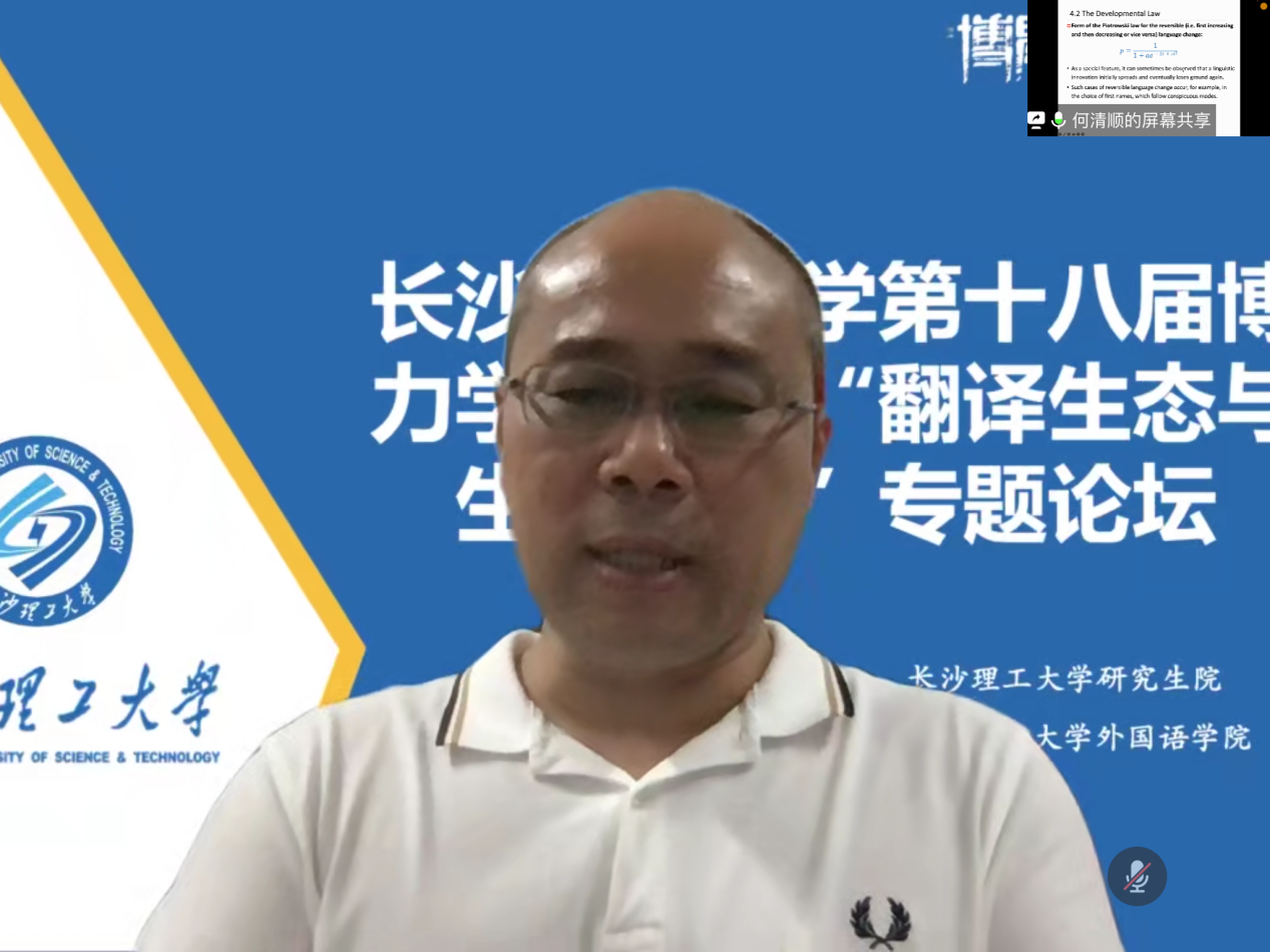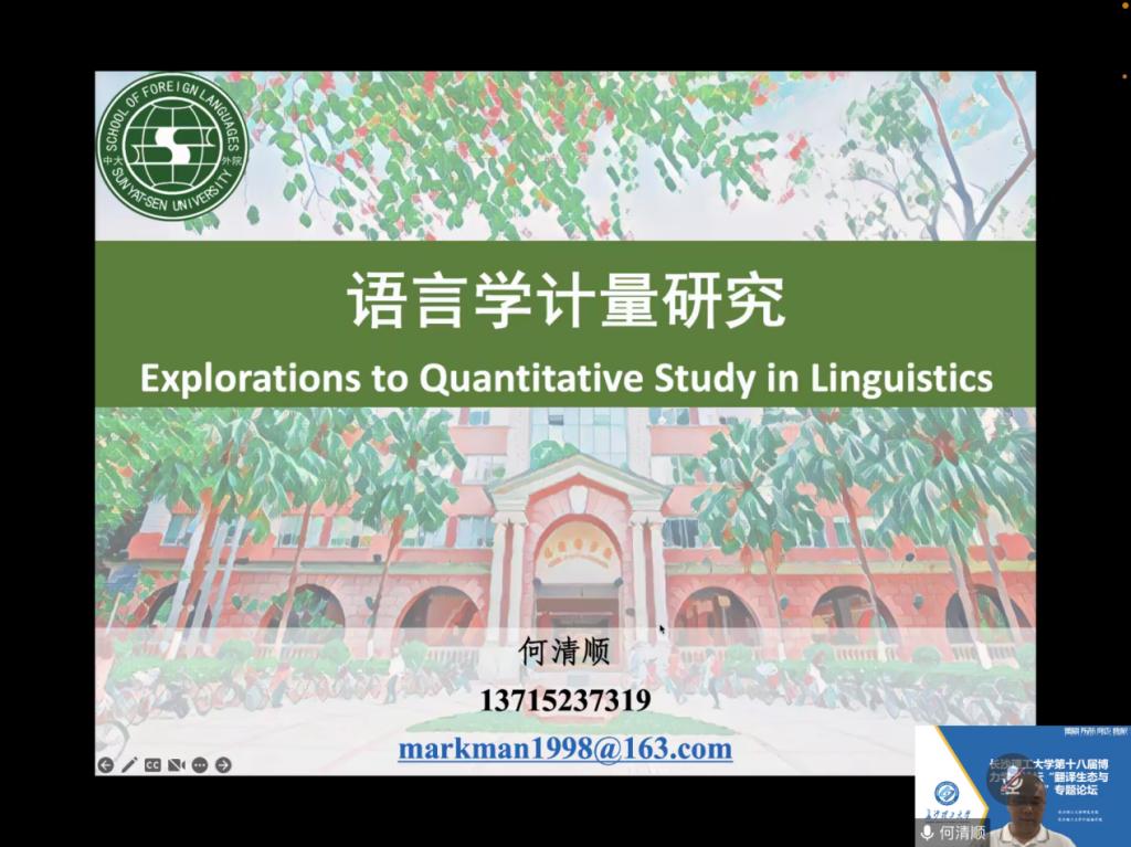 2022年11月,中山大学外国语学院博士生导师何清顺教授应邀为开云官网第十八届博力学术论坛 “翻译生态与生态翻译”专题论坛作了题为“语言学量化研究”系列专题讲座。讲座共5场,围绕语言学量化研究的概念与内涵展开。外国语学院全体研究生及部分导师参加了讲座。