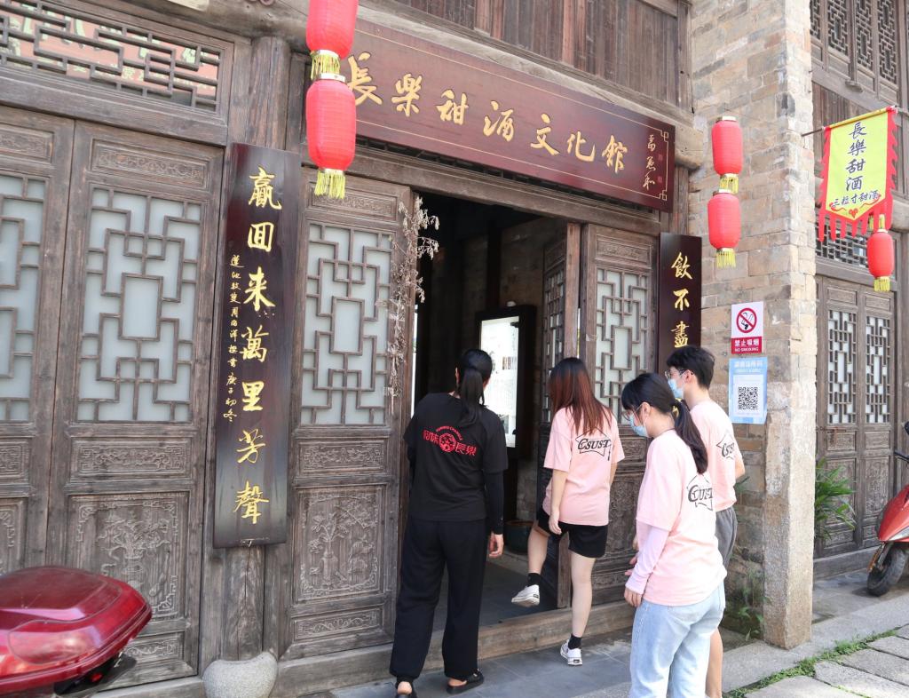 7月8日,实践团前往长乐甜酒文化馆开展实践活动。在长乐,家家都会酿甜酒,长乐悠久的历史、厚重的文化与长乐人的喜怒哀乐便凝聚于那一碗碗飘香的甜酒之中。实践团的成员们在讲解员的带领下进入长乐甜酒文化馆。