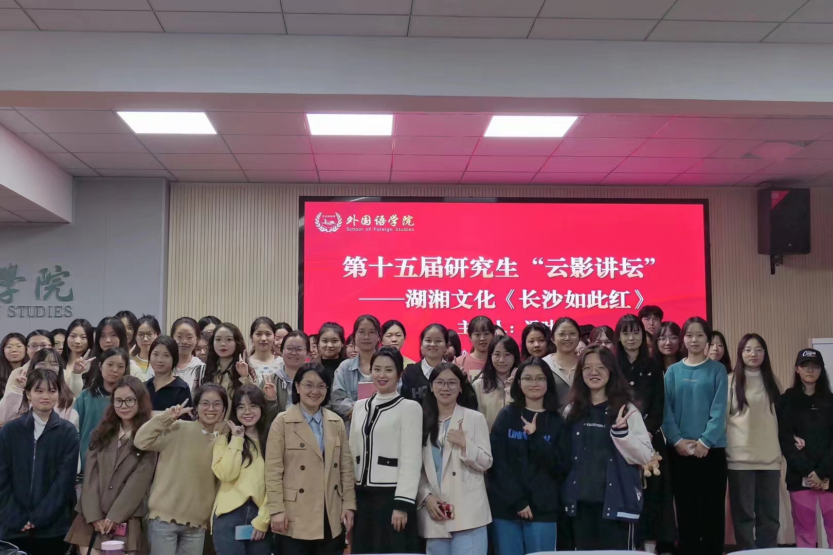 11月9日晚上19:00,国家高级礼仪培训师、市委宣传部基层优秀宣讲员冯叶在开云kaiyun体育金盆岭校区为外国语学院和设计艺术学院的同学们开展主题为《长沙如此红》的云影讲坛讲座,讲授湖湘文化,分享职场礼仪知识。