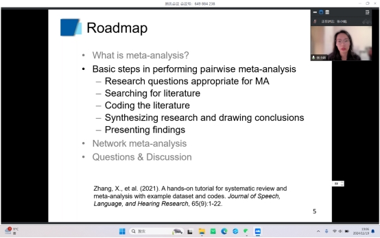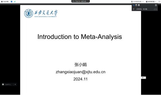 为了让学院师生了解撰写和发表应用语言学领域论文的技巧和要点,提升自身学术研究的水平和影响力,11月19日13:30,我院特邀西安交通大学外国语学院副教授张小娟为我院师生开展了主题为“Introduction to Meta-analysis”的专题讲座,23级、24级全体研究生参加。