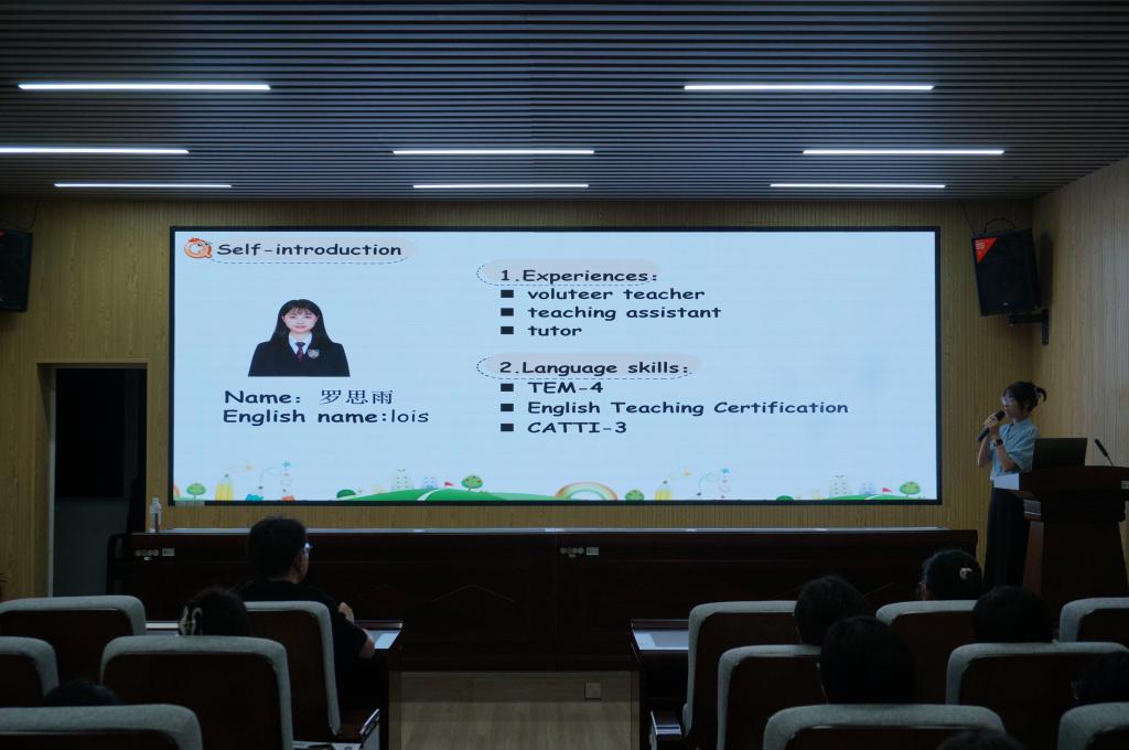 为进一步增强互动与实践性,外国语学院的罗思雨同学还在现场进行了英语教学内容的试讲展示。试讲结束后,胡老师从教学内容设计、课堂互动、语言表达及教姿教态等多方面进行了专业点评,并提出具体改进建议,令在场同学受益匪浅。