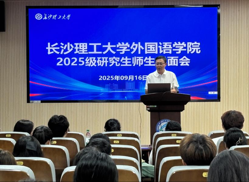 外国语学院院长段胜峰在欢迎辞中对新生的到来表示热烈欢迎。段院长结合学院学科特色,鼓励同学们以“跨学科思维”和“问题意识”为导向,在导师指导下夯实专业基础,同时注重学术诚信与团队协作,为成为“语言功底深厚、文化视野开阔”的复合型人才而努力。