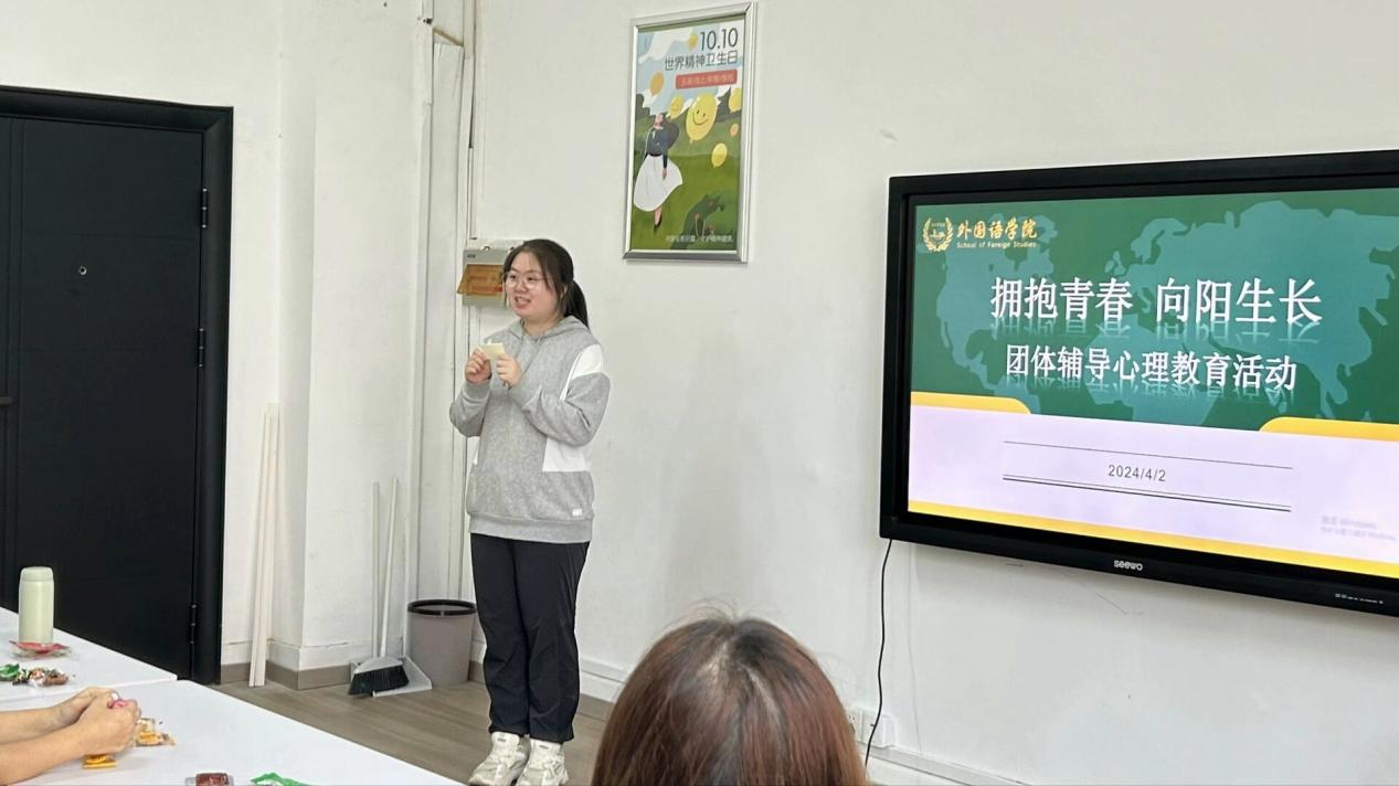为帮助同学们缓解焦虑,更加阳光自信,开云官网外国语学院朋辈心理互助部于2024年4月2日下午在三教团辅室开展了以“拥抱青春,向阳生长”为主题的团体辅导心理教育活动,旨在帮助同学更加全面的认识自己,发现自己独一无二的特点并缓解其心理压力过大而产生的焦虑感。