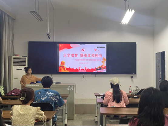 2023年5月30日下午两点半,外国语学院本科生英语党支部在文科楼C306开展“以学增智,提高担当本领”主题党日活动。此次活动由党支部组织委员翟鑫鑫主持,外国语学院本科生英语党支部全体成员参加。