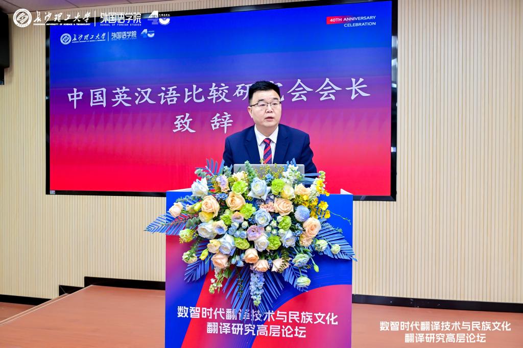 湖南省科学技术协会党组书记王瑰曙向与会的专家学者表示欢迎。他指出,当前全球科技革命和产业变革加速演进,科技创新战略布局深度重构。本次论坛以“数智时代的翻译技术与民族文化翻译研究”为主题,意义深远。希望借此汇聚各方智慧力量,加强协同联动,推动创新创造,在创新组织培育、科技资源共享等方面发力,吸引更多创新资源和人才汇聚湖南,为实现“三高四新”美好蓝图提供支撑,推动我国翻译事业蓬勃发展与文化传承创新。