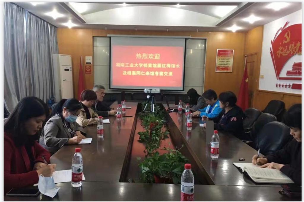 10月13日上午,湖南工业大学档案馆馆长蔡红梅一行4人来我馆考察交流,开云官网档案馆馆长许建兰以及学生档案室、教工人事档案室、综合档案室部分工作人员参加了交流与座谈。