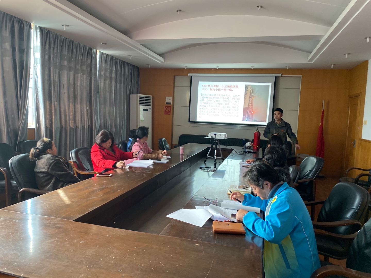 12月16日下午,湘安消防培训员刘铁军在金办大楼三会议室,为档案馆工作人员上了一场生动的消防安全培训课。刘教员用鲜活的案例、提问抽查的方式为大家讲授了消防安全知识,介绍了多种办公及家庭中常用的消防器材使用方法。通过培训,大家强化了消防安全意识,进一步明确了档案安全要务。