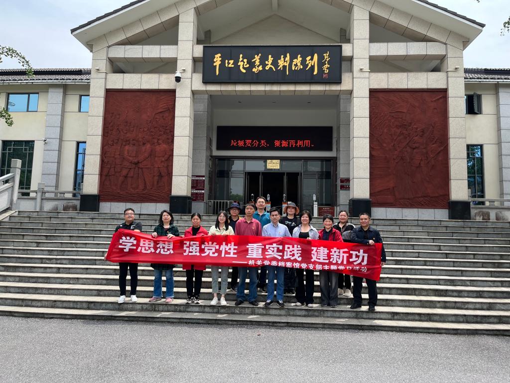 为深入开展学习贯彻习近平新时代中国特色社会主义思想主题教育,深切感受老一辈革命家对党和人民事业坚贞不渝的理想信念,5月13日,档案馆党支部在支部书记刘安生的带领下前往平江起义纪念馆,开展了“学思想、强党性、重实践、建新功”主题党日活动。