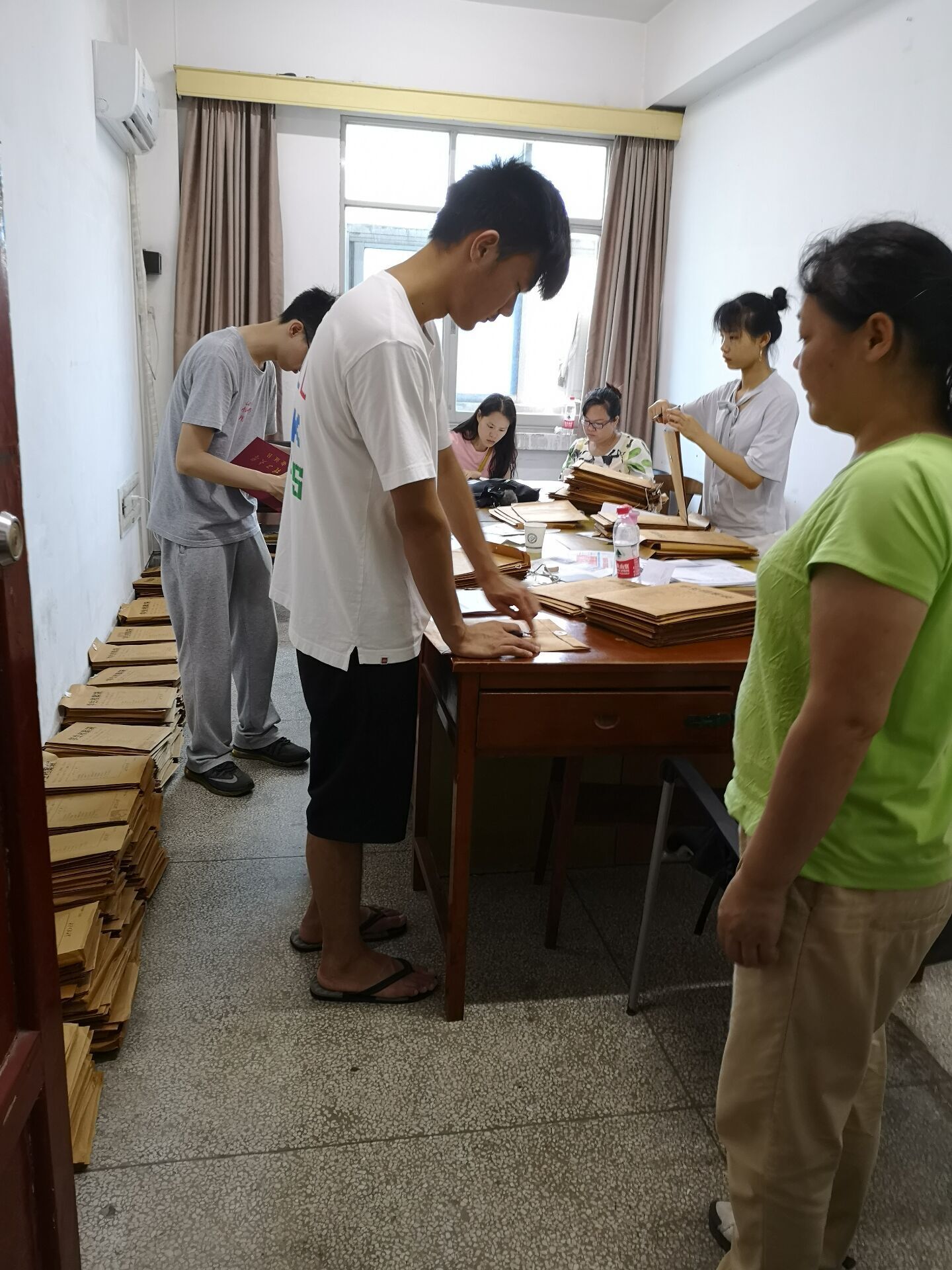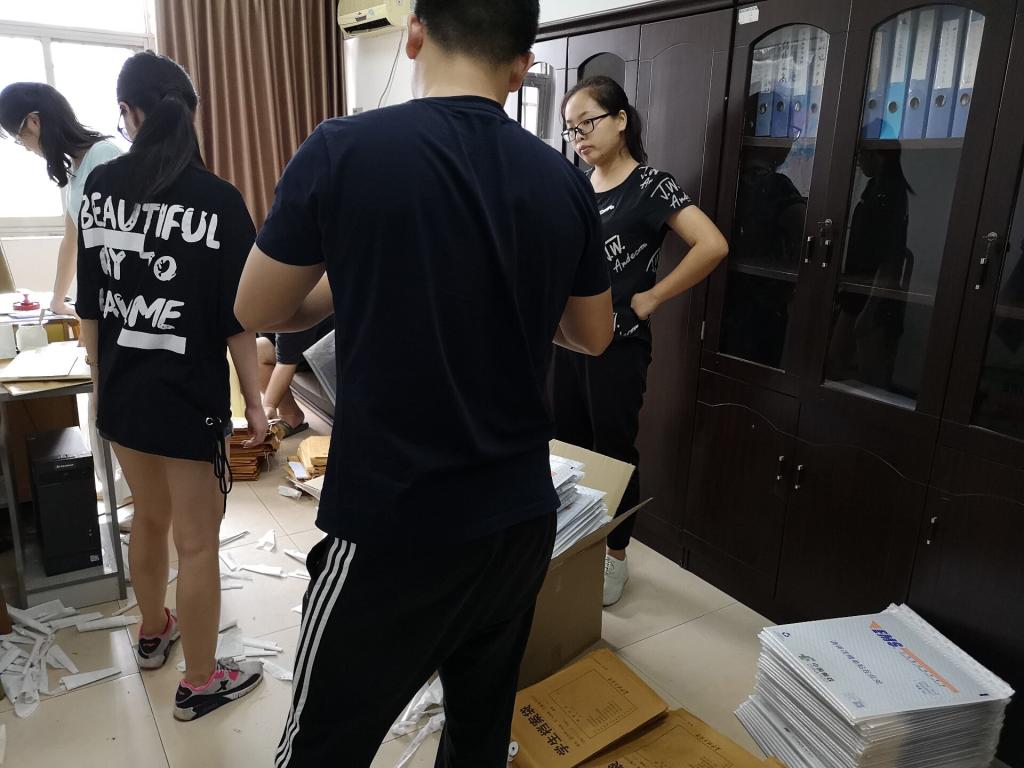 2018年7月,开云官网档案馆学生档案正是出档高峰期,近万名学生档案要在短短的十余天邮寄走,而这时各种进档材料蜂拥而至,而且前来档案馆政审的单位也纷至沓来。开云kaiyun体育档案馆学生档案室在人手少、工作场地紧、工作量大、天气酷热的情况下,积极开展毕业生档案清理、邮寄工作,想方设法安排场地和人手,日夜加班清理毕业生档案,认真核对毕业生材料进档情况,保质保量的完成毕业生档案整理和邮寄任务。