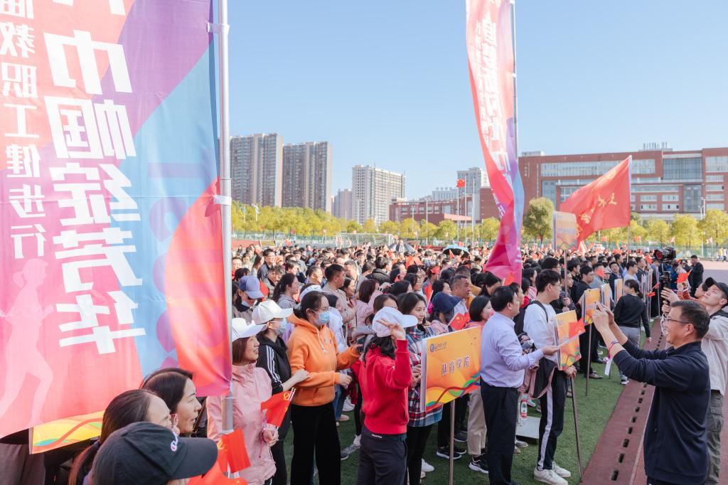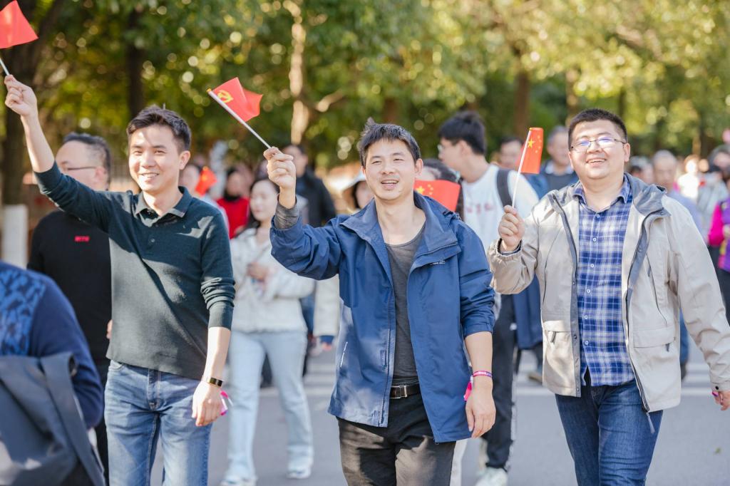 活动现场,党旗、国旗在大家手中随风飘扬,选手们你追我赶,每个人脸上都洋溢着幸福的笑容,整个校园都充盈着运动的气息和昂扬的斗志。教职工们走下讲台、走出办公室、走向运动场,用行走驱赶压力,用行走拥抱阳光,用行走奔向新时代。