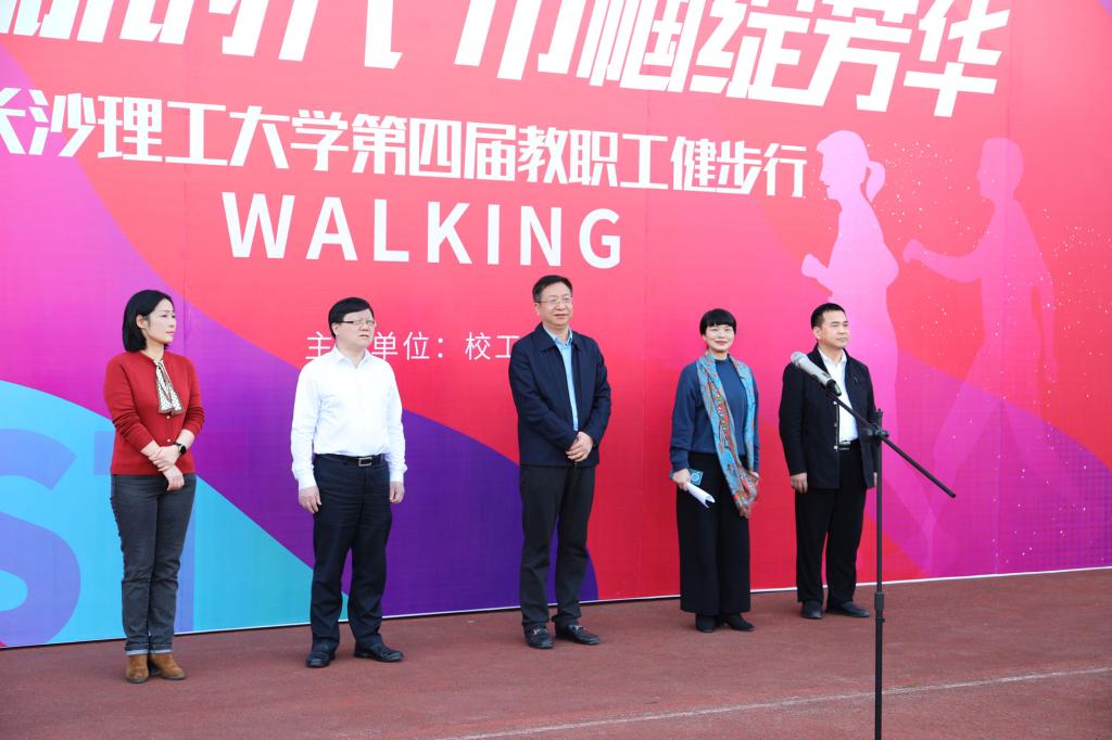 活动开始前,蒋璟萍进行致辞,她希望各位教职工在行走中丈量校园的魅力,在坚持中品味运动的快乐,在前进中携手并肩、互相扶持,感受理工人团结向上的精神风貌。