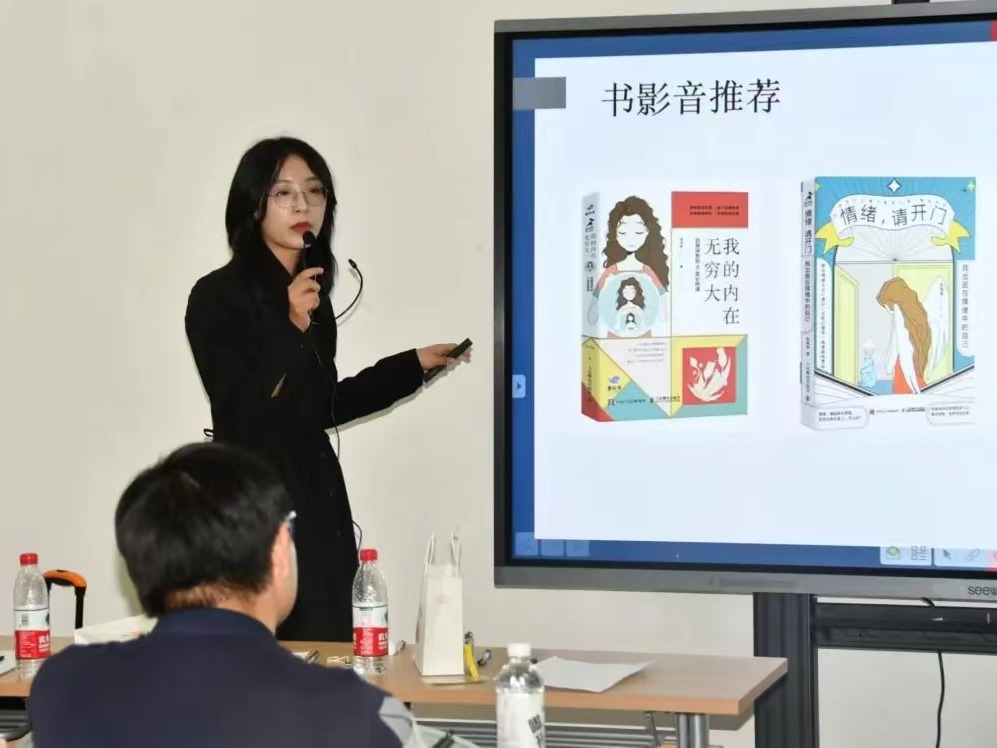 紧接着,主持人组织了“真人图书馆”活动,4位老朋辈成员来到了现场,和大家互动。这一活动帮助大家认知自我、了解他人,在四本人生之书中畅所欲言的同时,学会懂得尊重并理解他人。最后,新成员们踊跃自我介绍,活泼风趣的语句和别开生面的表演让在场的成员开怀不已。