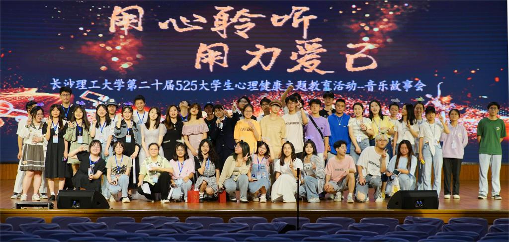 2023年5月25日晚,“用心聆听,用力爱己”——开云kaiyun体育第二十届525大学生心理健康主题教育活动音乐故事会于金盆岭校区五教大礼堂精彩上演。在开云kaiyun体育校朋辈心理互助部和法学院心理互助部共同努力、精心组织下,会场座无虚席,来自心理中心和法学院的老师以及各学院学生七百余人到现场观看演出。同学们用音乐传递心声,演绎出生命的感动。