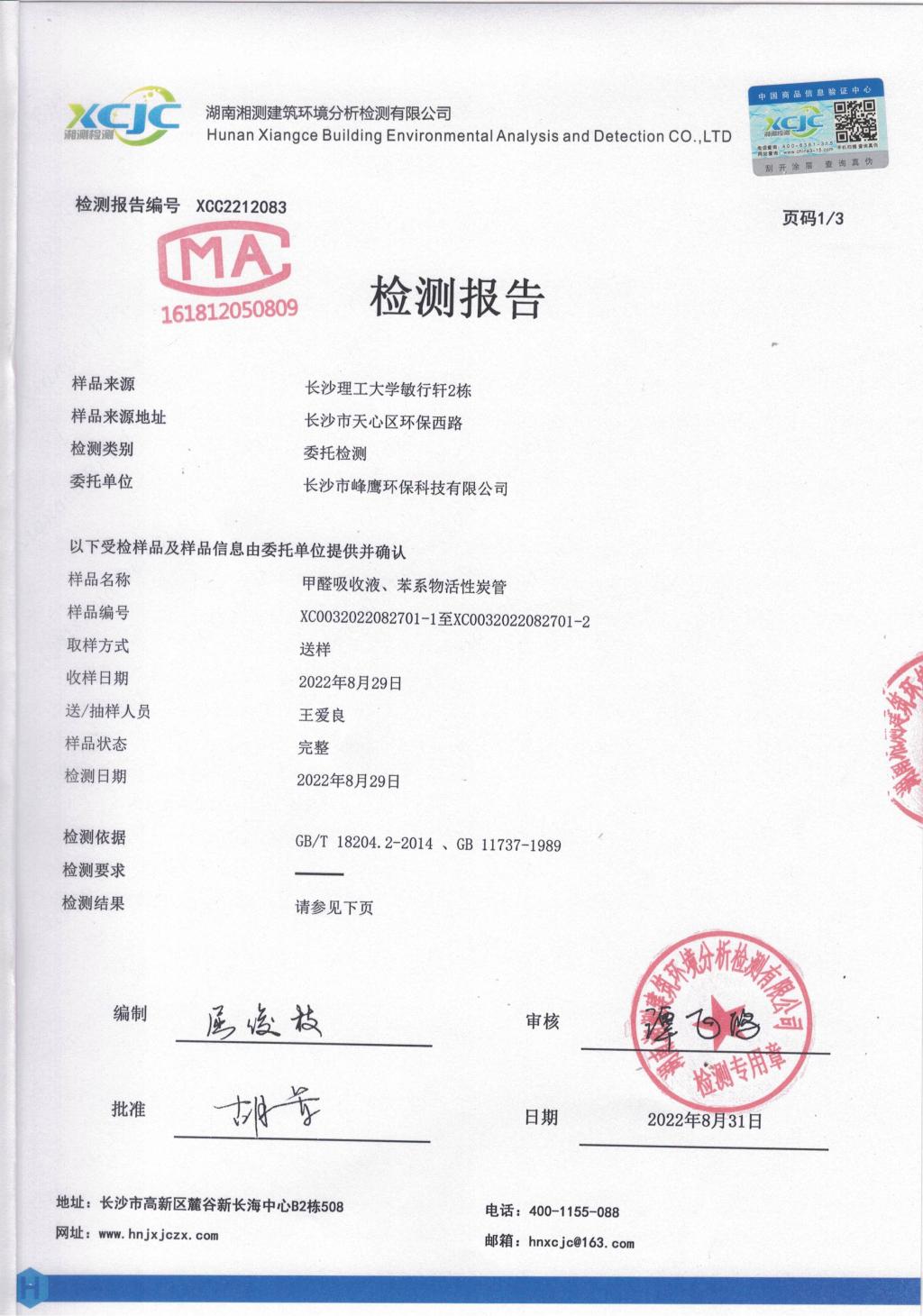 云塘校区新建敏行轩2栋A区室内空气检测报告
