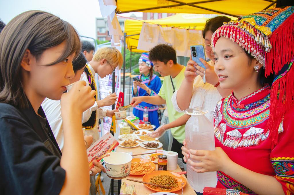 帕里夏提·帕尔哈提说:“今年的民族文化节,如同一场五彩斑斓的盛宴,让我深深感受到了中华文化的博大精深和独特魅力。走进“民族村”现场,我仿佛穿越到了一个多民族的大家庭。各色的民族服饰、手工艺品、特色美食,让我目不暇接”。