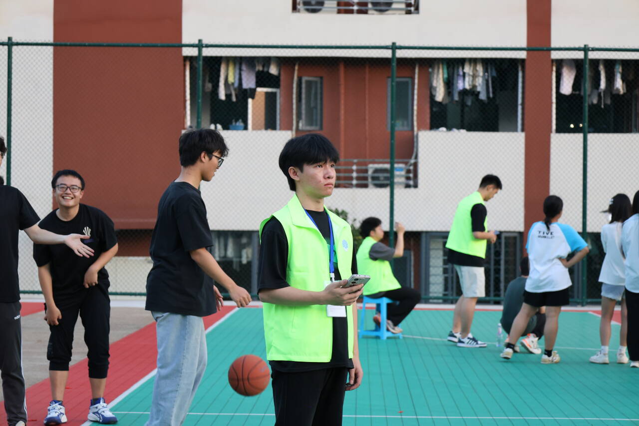 学社联同学的开场舞点燃全场,王学成的加油鼓劲、篮球赛冠军队土木学院的精彩三分球把运动会推向高潮。三分球挑战区秒变“欢乐之区”——每当有人投中,围观群众就会集体欢呼和加油助威;筷夹乒乓球区上演“手抖大师”合集,乒乓球逃跑的速度比早八人冲向教室还快;投壶比赛榜首投中33支,简直就是长理“神投手”;“你画我猜”的默契配合、“疯狂快递员”的障碍冲刺、“四人五足”的团队协作,无不展现着室友们的默契、智慧与活力,让整个至诚轩社区篮球场成为欢乐的海洋,现场笑声不断。