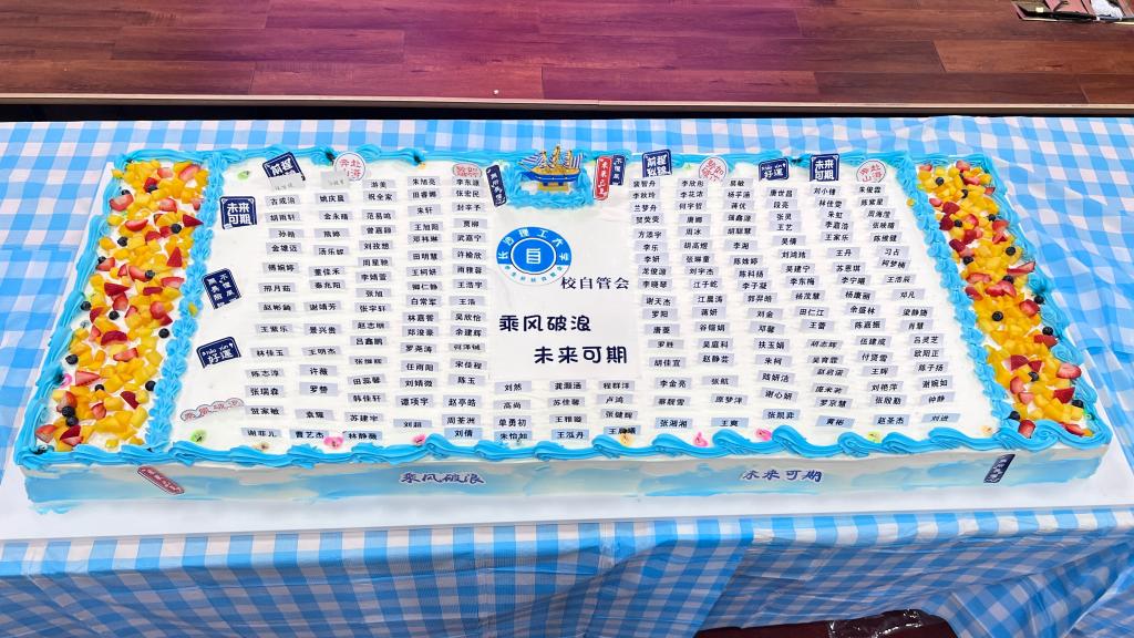 大会还设置了一个特别的惊喜环节——为部门六月份生日的成员共同庆祝生日。在温馨的氛围中,全体成员共唱生日歌,大家一起切开写有所有部门成员和老师名字的大蛋糕,现场充满了欢声笑语和感动。这个环节不仅增进了成员之间的感情,也让大家感受到了自管会这个大家庭的温暖。