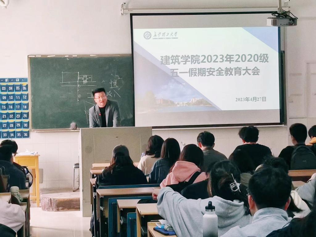 为切实增强学生的风险防范意识和避险能力,提升同学们在五一假期的安全意识,保障学生人身和财产安全,4月27日中午12:00,建筑学院在16教313召开了五一假期安全教育大会,年级辅导员郭恒及2020级全体学生参会。