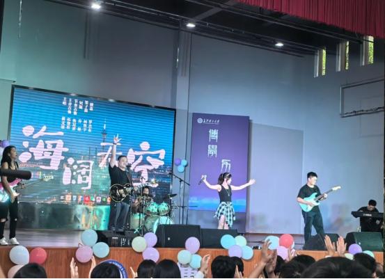 文艺表演环节更是将典礼氛围推向高潮。毕业生们用才艺展示着青春的风采与力量:大合唱《凤凰花开的路口》,饱含着对往昔岁月的眷恋与对未来的憧憬,同学们的歌声里带着淡淡的忧伤与坚定的信念;舞蹈《Bubble》节奏动感,舞者们活力四射,瞬间点燃现场气氛;中国舞《入画江南》则以水墨般的意境,将离别之情演绎得诗意满满。毕业生辅导员赵俊程老师带领的单片机乐队压轴登场,一曲《海阔天空》,将全场氛围烘托得温馨而热烈,也象征着毕业生们即将勇敢地奔赴广阔天地,追逐自己的梦想。