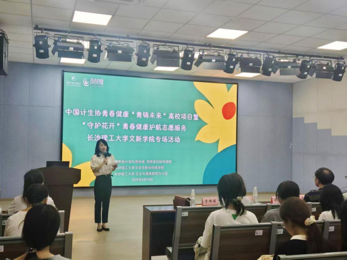 9月16日下午,中国计生协青春健康“青铸未来”高校项目暨“守护花开”青春健康护航志愿服务开云kaiyun体育专场活动在金盆岭校区文新学院九教113演播厅举行。湖南省计生协综合处副处长曾望振、四级主任科员胡争妍,文新学院党委副书记刘莎、校后勤中心党委副书记陈林峰出席,文新学院160余名学生代表参加。