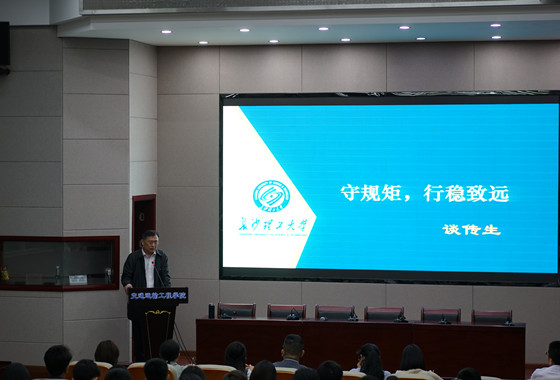 当晚,全体学员迎来了青马班第一课——由副校长谈传生为大家讲授 “守规矩,行稳致远”。课堂中,谈传生勉励大家:作为当代青年,要明确肩上的责任与使命,讲好规矩,强化“四个意识”,深刻领会规矩的意义。他结合二十多年学生工作的经验,深入浅出地为大家阐述了“讲规矩是最大的政治、懂规矩是最大的学问、守规矩是最大的智慧”的深刻道理,并对同学们提出四点殷切期望:不要忘记本分而过早踏入社会,不要抱着某种目的而是真心服务他人,不要仅用眼睛而是用心洞察事物,不要刻意模仿而失真自我。