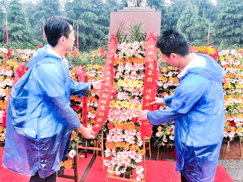 雄鹰班学员们在实践中成长,先后经历了曝晒和暴雨的极端天气的考验,经受住了长途跋涉对精神和身体的双重极限挑战。行进期间,旗帜飞扬,一路歌声不断,大家利用休息时间开展了红色故事分享会,原创诗歌创作,实时打卡等活动,气氛活跃,斗志昂扬。用脚步丈量青春,切身感受湖南的发展与变化。没有人掉队,没有人退缩,比预计时间更是提前了半小时抵达“红色圣地”韶山。在韶山,开展了系列爱国主义教育。向毛泽东铜像献花,在大雨中庄严宣誓,“翱翔九天不朽青云之志,逐梦一心建功时代辉煌!”誓词掷地有声!《睹主席遗物,学伟人风范,做合格党员》的精品党课滋养润心。在交流分享会上,经管学院杜逢清提到,“这将成为我人生最重要的记忆,在这样一个交通发达的时代,我们体验了一次长途跋涉的艰辛,想到红军长征二万五千里,真切的让我们感受到了信仰的力量。在雨中我们互相搀扶,互相鼓劲,让我倍感温暖。”