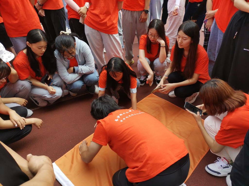 活动伊始,来自全校16个学院的486名学员在5名专业教练的带领下,依次完成了“按摩操”“花开花落”“台风来袭”等破冰热身游戏。在热烈的团队氛围中,各队队长带领队员集思广益,共同构思出特色各异的队名与口号,并进行分享展示。学员们在“破冰”行动中融合,找到了团队归属感,确立了小队目标。