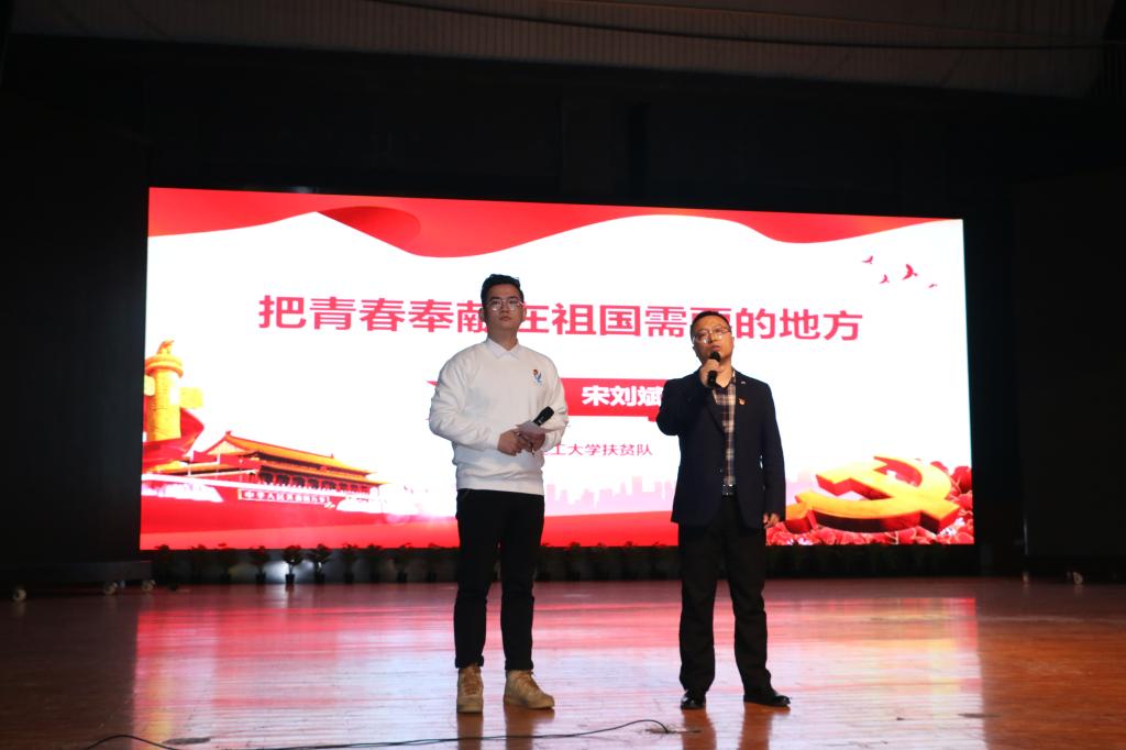 宋刘斌分享了自己在全国脱贫攻坚表彰大会上的感受以及在扶贫一线三年时光里的经历。从成立党员志愿服务队,修建贵王桥和5组通护路,到投入资金建设易地扶贫搬迁安置点、动员全校师生“带货”帮售农产品,在宋刘斌的讲述中,长理学子仿佛置身于枧杆山村的三年峥嵘岁月,亲历见证了山村的蜕变新生,也深切领会了打赢脱贫攻坚战对于中国乃至世界的重大意义,对党的政策的科学惠民性、国家制度的优越先进性,有了深刻的理解和认识。
