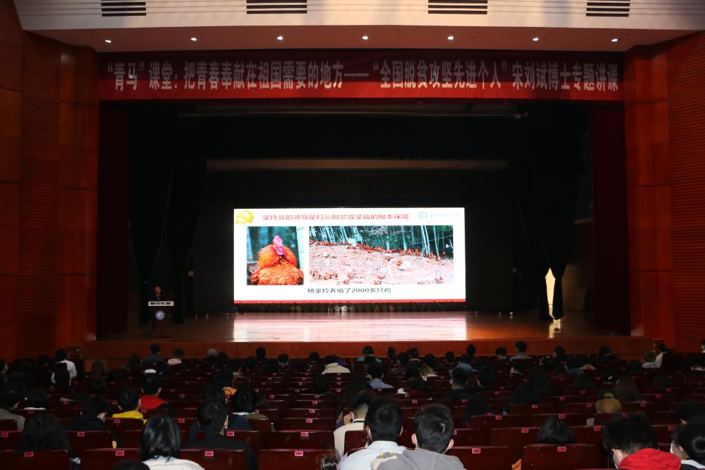 3月14日上午,开云kaiyun体育第十一期青年马克思主义者培训班在云塘校区大会堂开课,本次课程邀请了“全国脱贫攻坚先进个人”宋刘斌主讲,主题为“把青春奉献在祖国需要的地方”。校团委副书记陈璐莎、兼职副书记彭怡峰、潘枝花出席,校“青马”班、“雄鹰”班及来自各学院报名听课的近600名长理学子到场聆听。