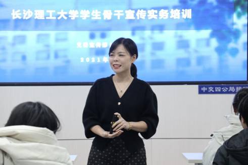 12月21日晚,学生骨干宣传实务培训活动在云塘校区工科二号楼A304举行。本次课程由党委宣传部叶正芳老师主讲。校团委宣传组织办公室肖凤老师,校学生会、社联等各团属学联组织宣传通讯员,长沙理工阳光传媒工作室全体成员参与此次培训。