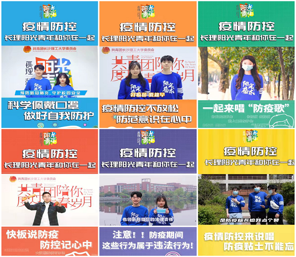 各级团组织利用现有公众号等平台大力宣传防疫知识和战疫精神,艺术学院、水利学院、文新学院创作了《疫情退散 无惧风浪》、《等待》、《我们都是追梦人》、《防疫手势舞》等视频鼓励广大师生面对疫情不恐慌,不盲目听信谣言,有勇气、有信心打赢疫情阻击战。